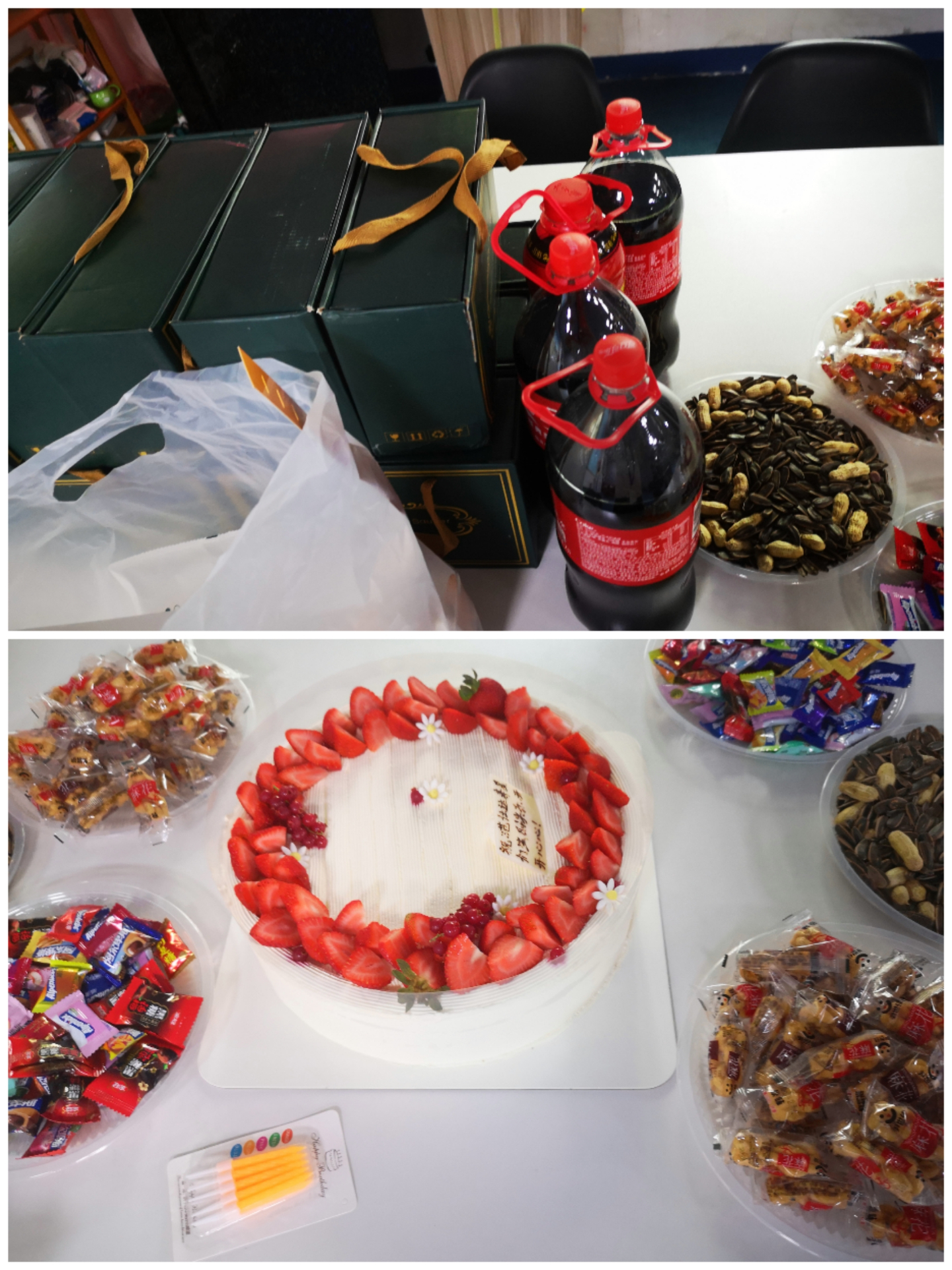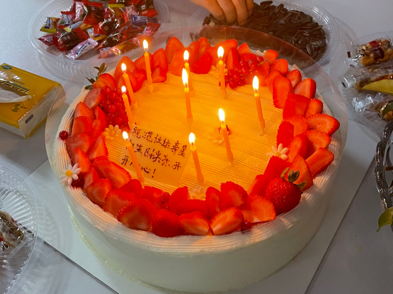 豐盛的水果和零食、新鮮美味的蛋糕渲染出生日溫馨的歡快氣氛。隨著音樂的響起,“壽星們”都圍了過來,特制的生日蛋糕上蠟燭相繼被點燃,“壽星們”共同許下愿望,現場全體員工齊唱“生日快樂”,吹蠟燭、切蛋糕,活動現場歡笑聲不斷!